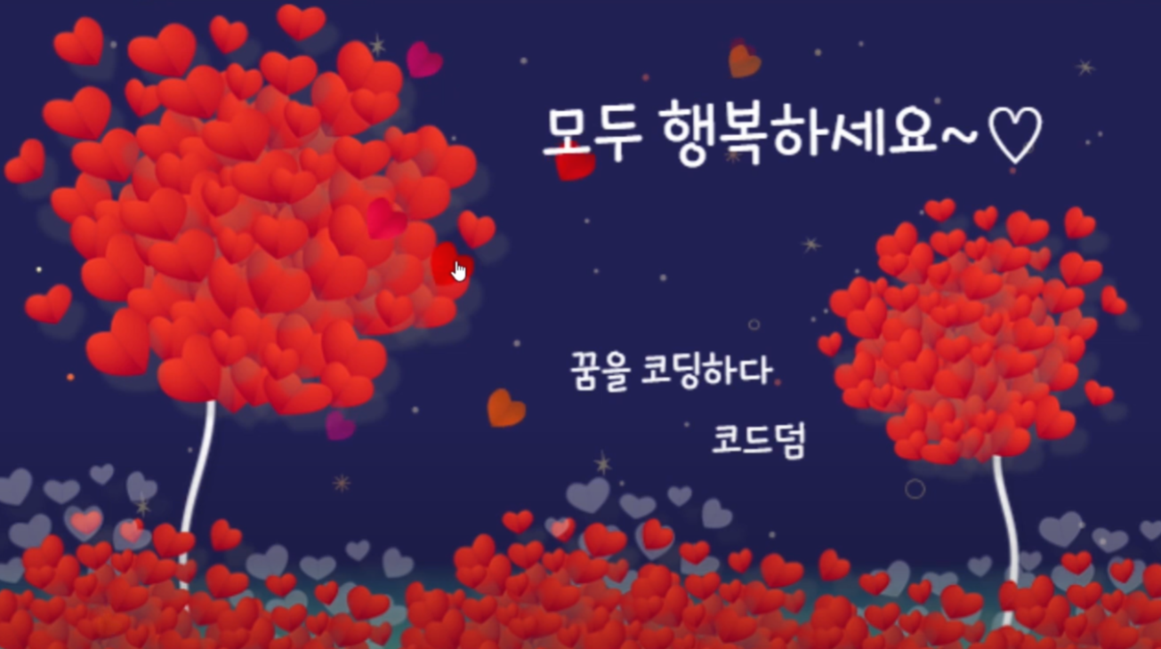 하트트리 배경 이미지에, 하트 하나를 따로 가지고 왔어요.