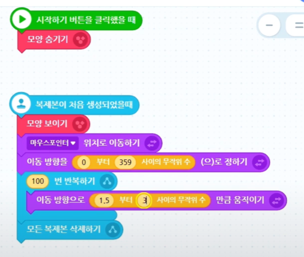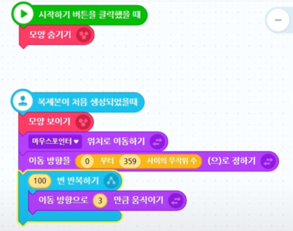 이렇게 움직이는 속도도 무작위 수로 지정해 줄 수 있어요.