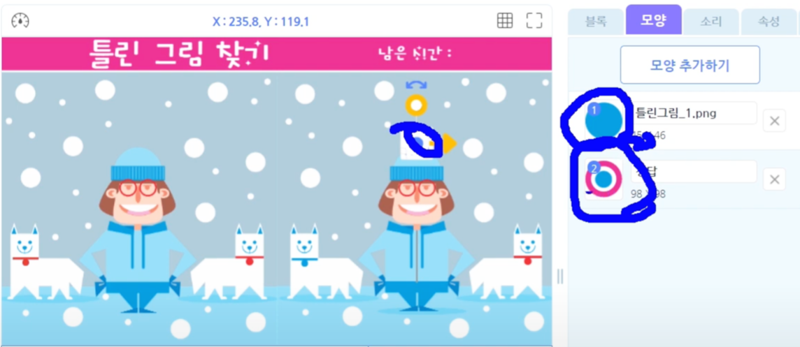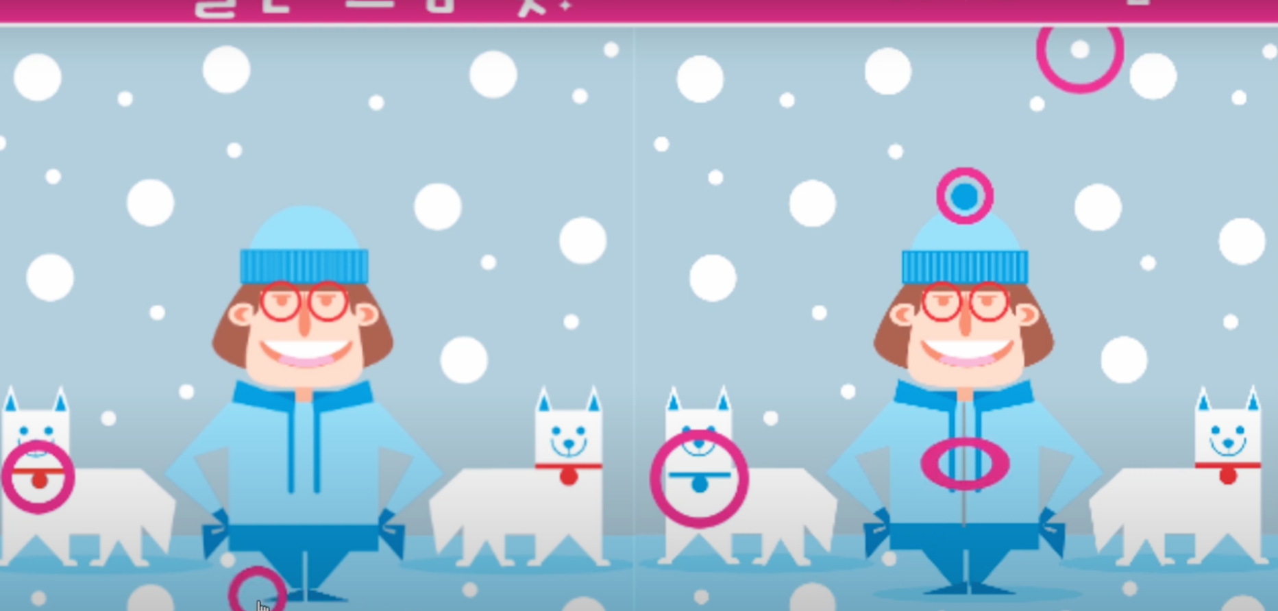 아래처럼 틀린 그림을 클릭하면, 동그라미로 정답을 처리해 준답니다.
