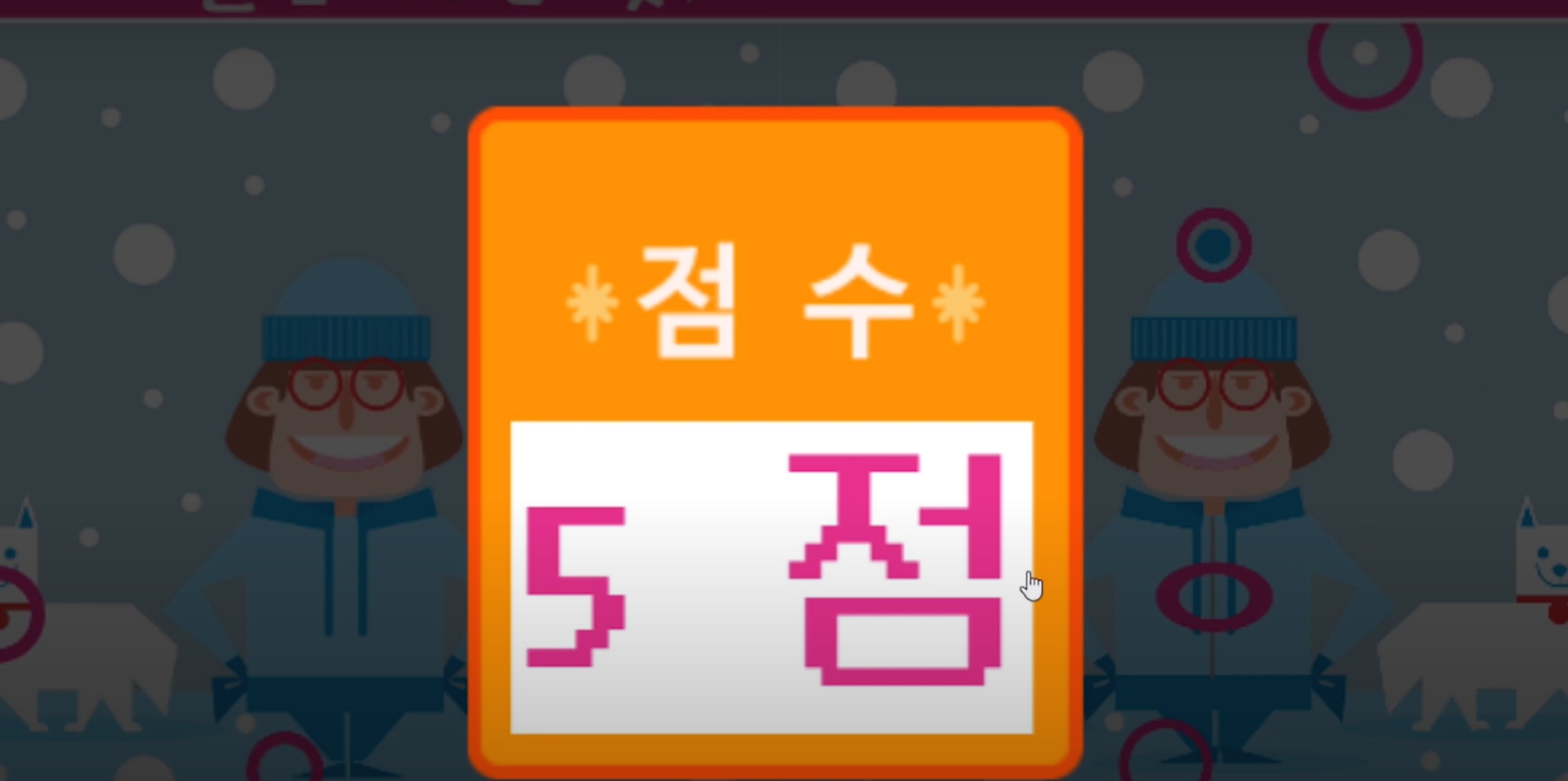 10초 동안 맞은 정답 개수를 시간이 지난 후에 점수판으로 띄워준답니다.