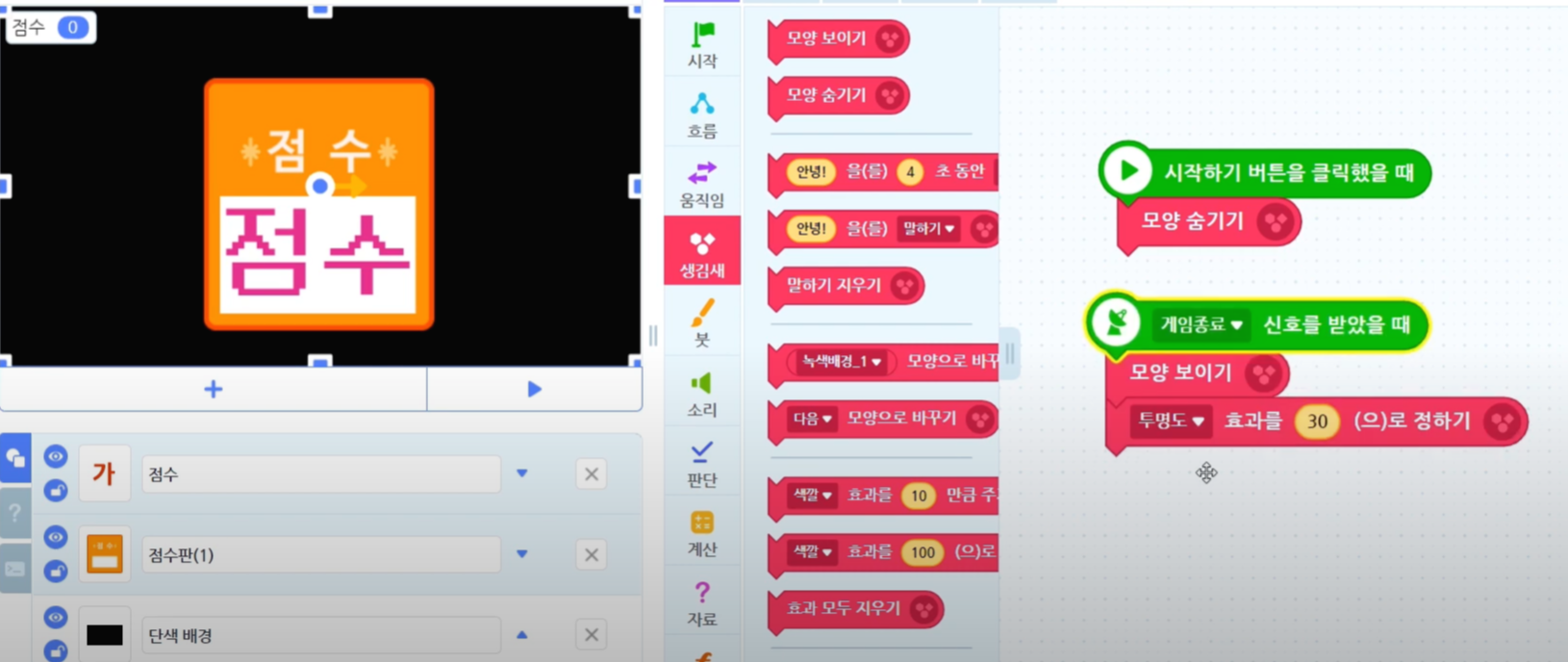 그리고 게임 종료 신호를 받으면, 점수판이 나타날 거랍니다.