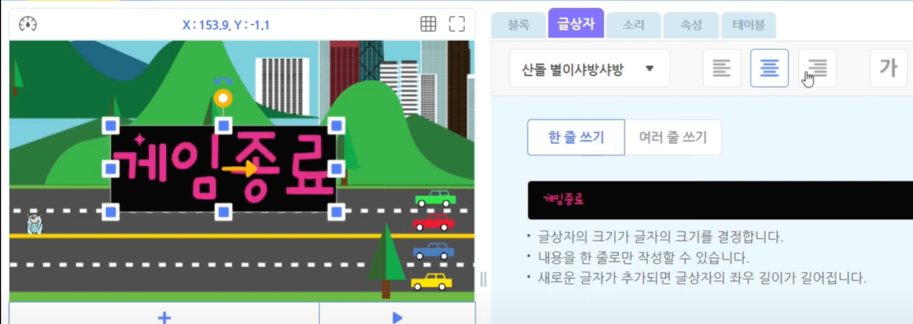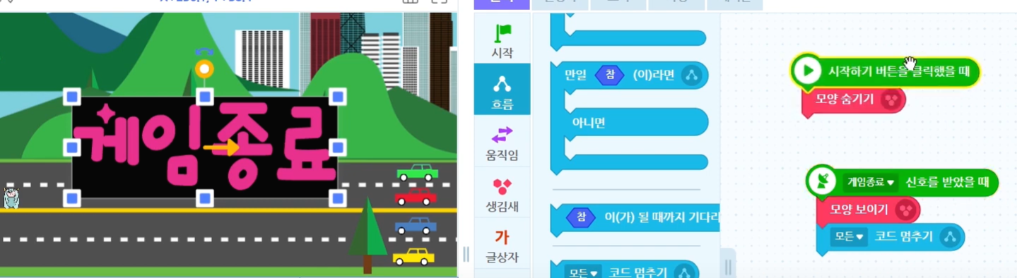 그리고 글상자를 사용해서 게임 종료를 만들어 줄게요.