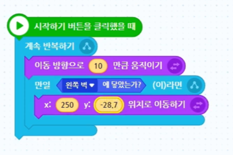 이렇게 달려가다가 왼쪽 벽에 닿으면, 다시 현재 위치에서 다시 달려 나가도록 만들어줄 거예요.