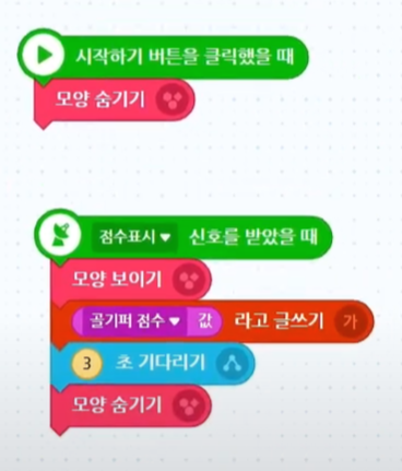점수표시라는 신호를 받으면, 모양을 보이도록 만들어 줄 거랍니다.