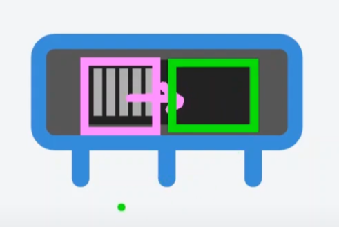 슬라이더를 밀 때마다 왼쪽 회로 또는 오른쪽 회로로 연결되는 구간이 달라지는 거예요.