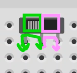 슬라이더 스위치를 왼쪽으로 밀어두면, 아래와 같이 왼쪽과 가운데 다리 두 개가 연결됩니다.