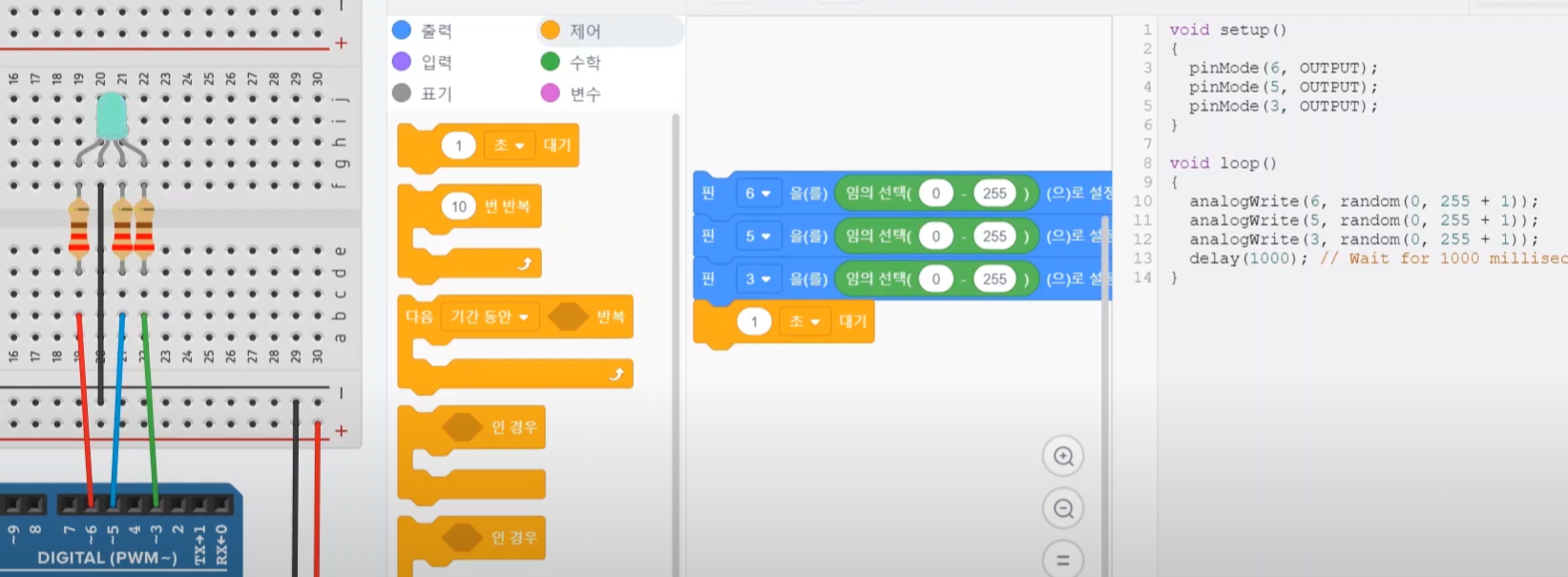 지난 시간에 디지털 출력을 사용해서 삼색 LED의 색을 표현해 보았는데요.