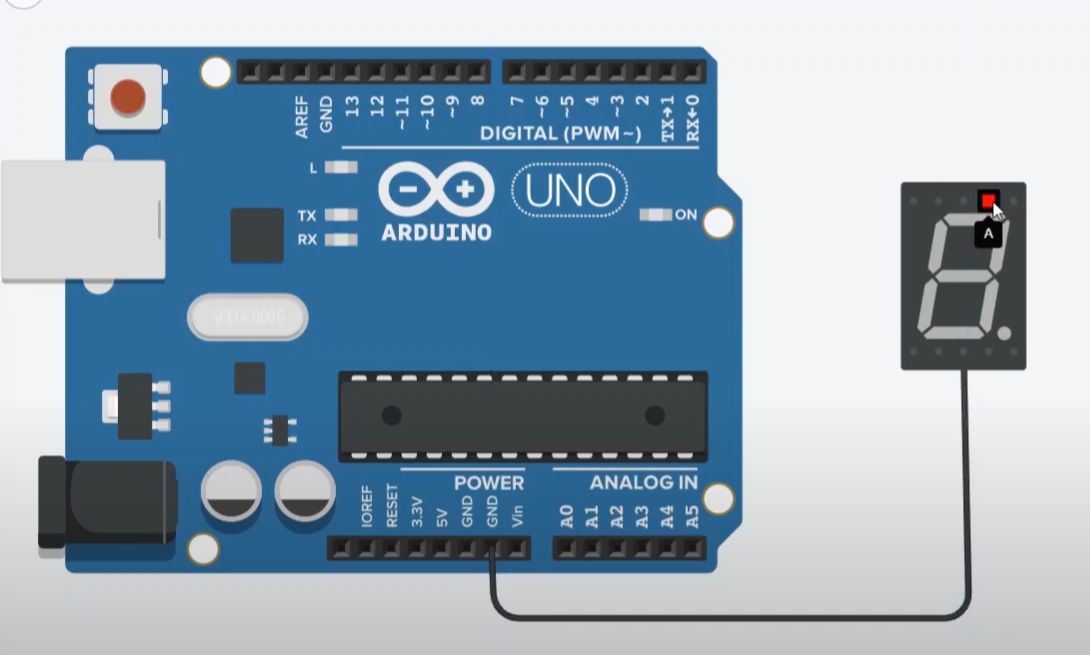 2번, 3번, 4번 핀을 HIGH로 지정해 주면, 아래와 같이 7이 표시된답니다.