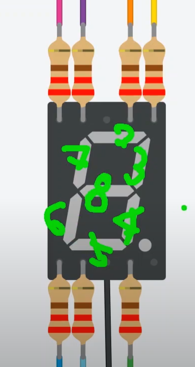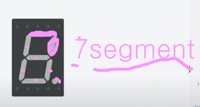 하나의 숫자를 표현하기 위해 7개의 조각으로 나누고, 각 조각마다 LED가 심어져 있다고 했죠!