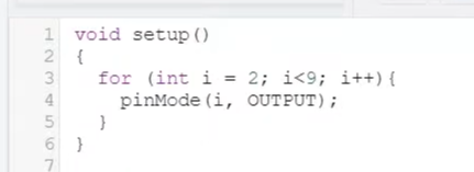 for문을 사용해서 핀모드를 설정해 주겠습니다.