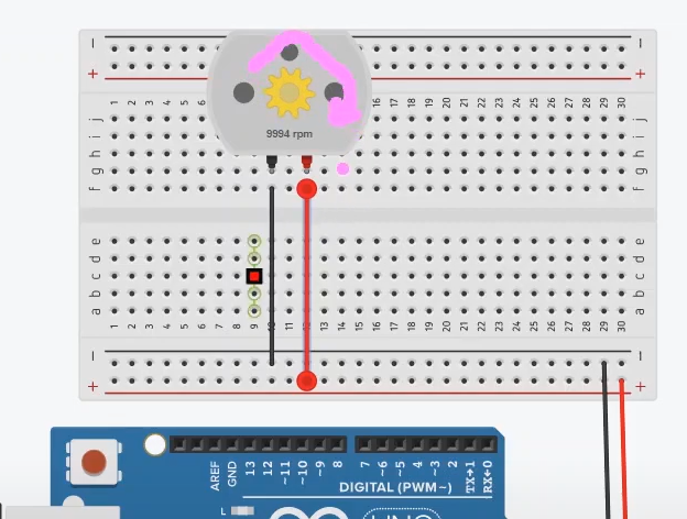 DC 모터는 많은 전류를 필요로 합니다. 너무 적은 전류가 공급되면, DC 모터가 제대로 작동하지 않거나, 아두이노 보드로부터 너무 많은 전류를 끌어오기 때문에 아두이노 보드에 문제가 생길 수 있습니다. 예를 들어서, DC 모터를 아두이노 디지털 핀을 통해 제어를 하고 싶어서, 디지털 핀으로 바로 연결을 했다고 가정해 볼게요.