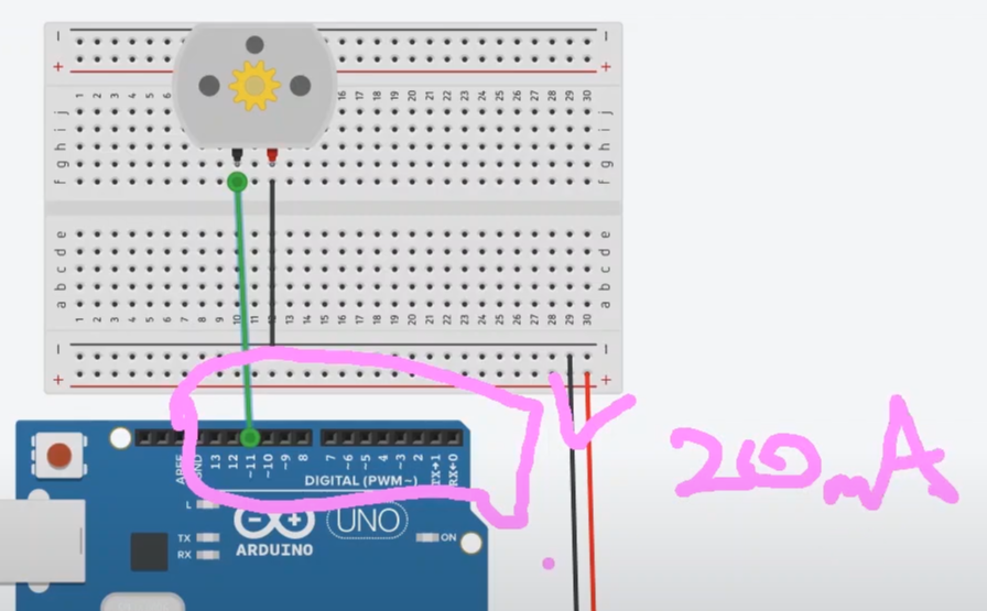 아두이노 디지털 핀에서 출력 가능한 전류는 20mA밖에 되지 않습니다.