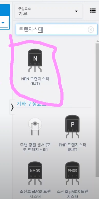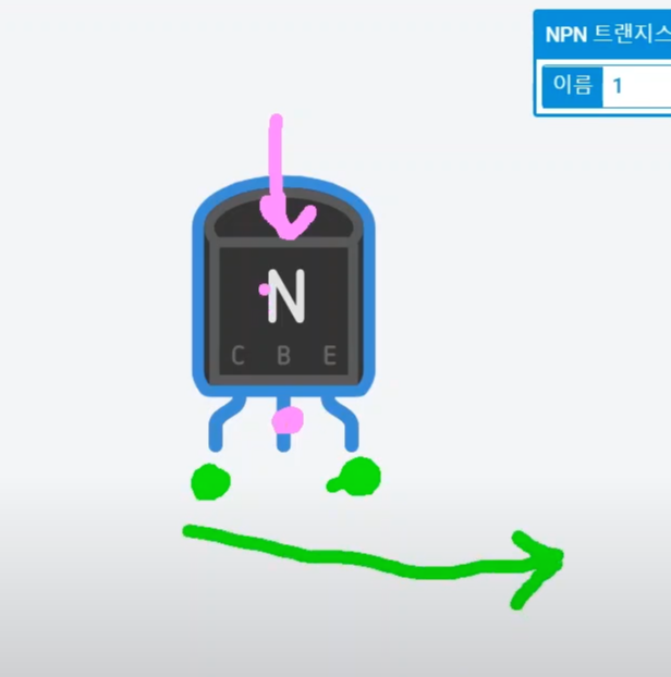 NPN 트랜지스터를 가지고 올게요. 사실 트랜지스터는 설명할 부분이 많은데요.