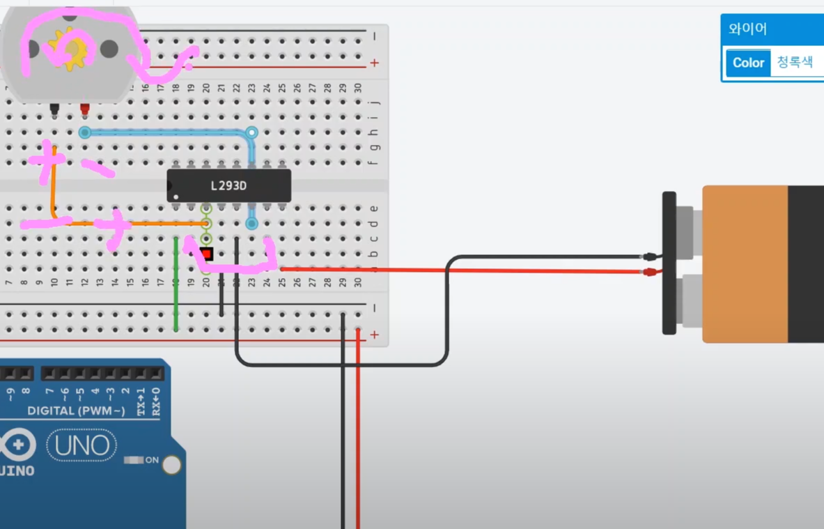 그래서 아두이노 우노 보드의 디지털 핀으로 연결을 해 줄 거예요.