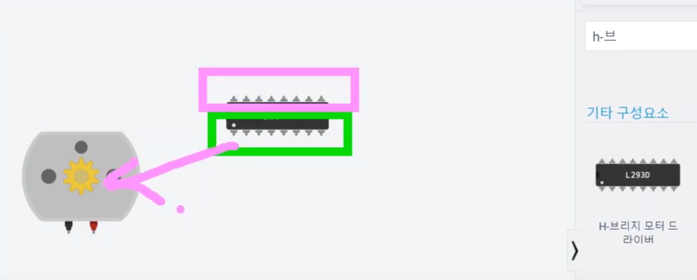 H브리지 모터 드라이버에 보시면, 하얀색 동그란 점이 하나있죠!
