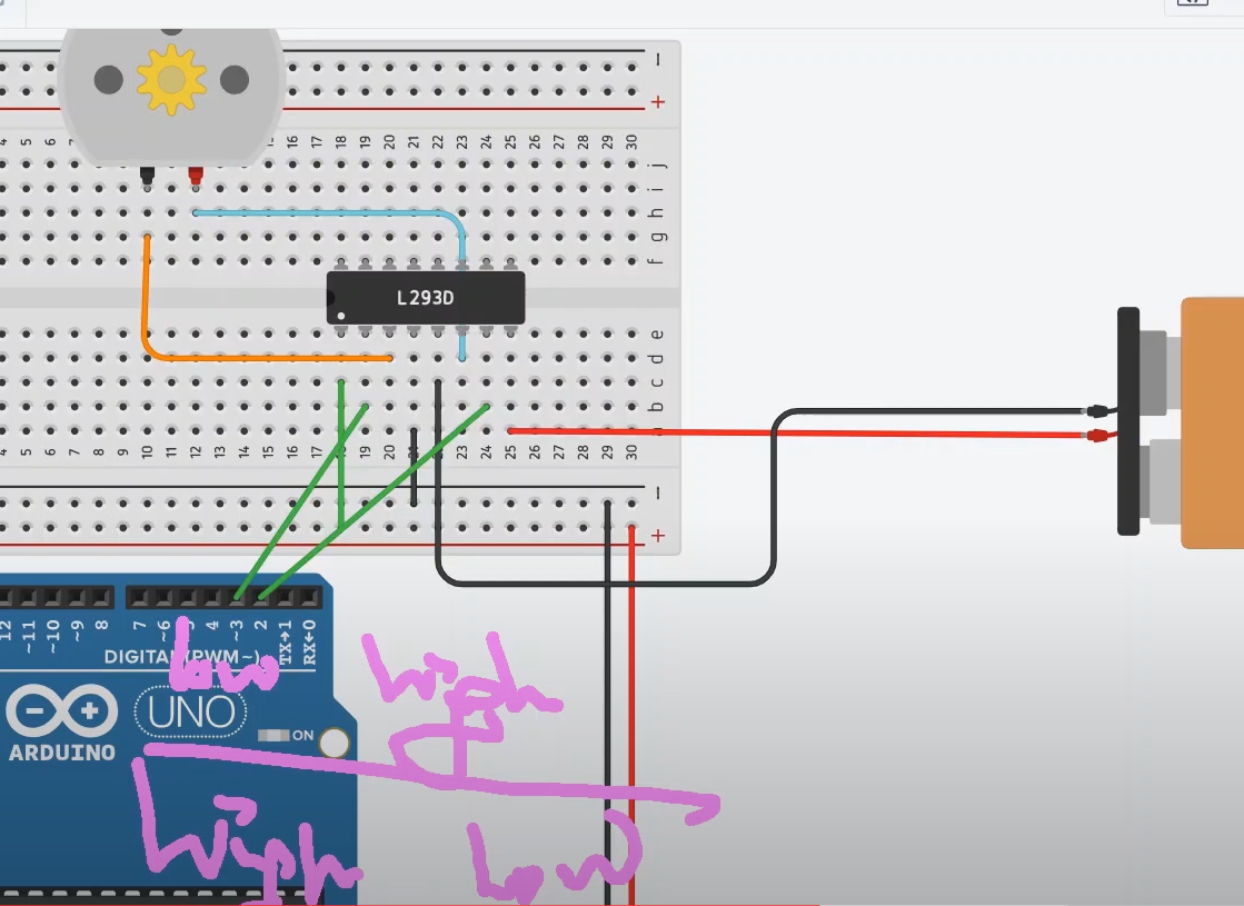 2번과 3번을 각각 LOW, HIGH로 두었을 때와, HIGH, LOW로 바꿨을 때, 회전하는 방향이 반대가 됩니다.