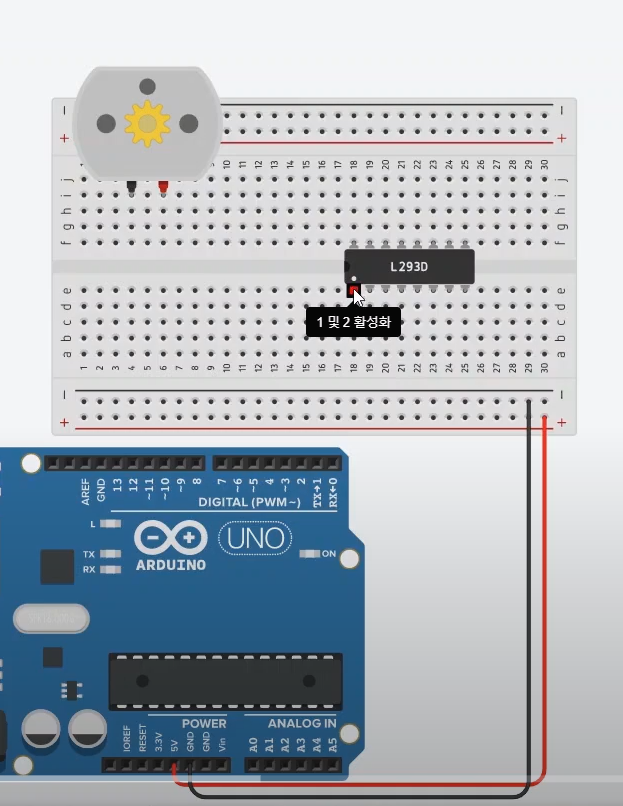 저는 계속 DC모터를 사용할 예정이기 때문에, 활성화 핀을 전원 버스로 바로 연결을 하겠습니다.
