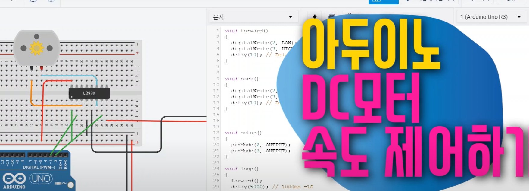 지난 시간까지 만든 회로와 코드를 가지고 와서 속도를 제어하는 방법에 대해 알려드리겠습니다.