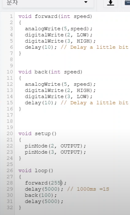 analogWrite(5, 255); //최고속도
