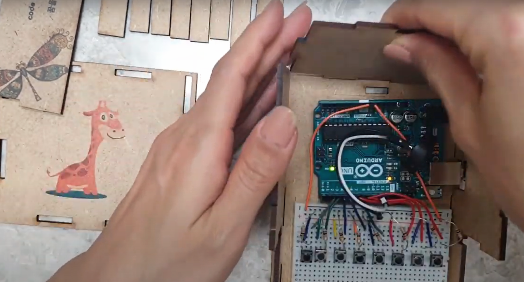 피에조 부저와 버튼을 사용해서 만든 작품이랍니다.