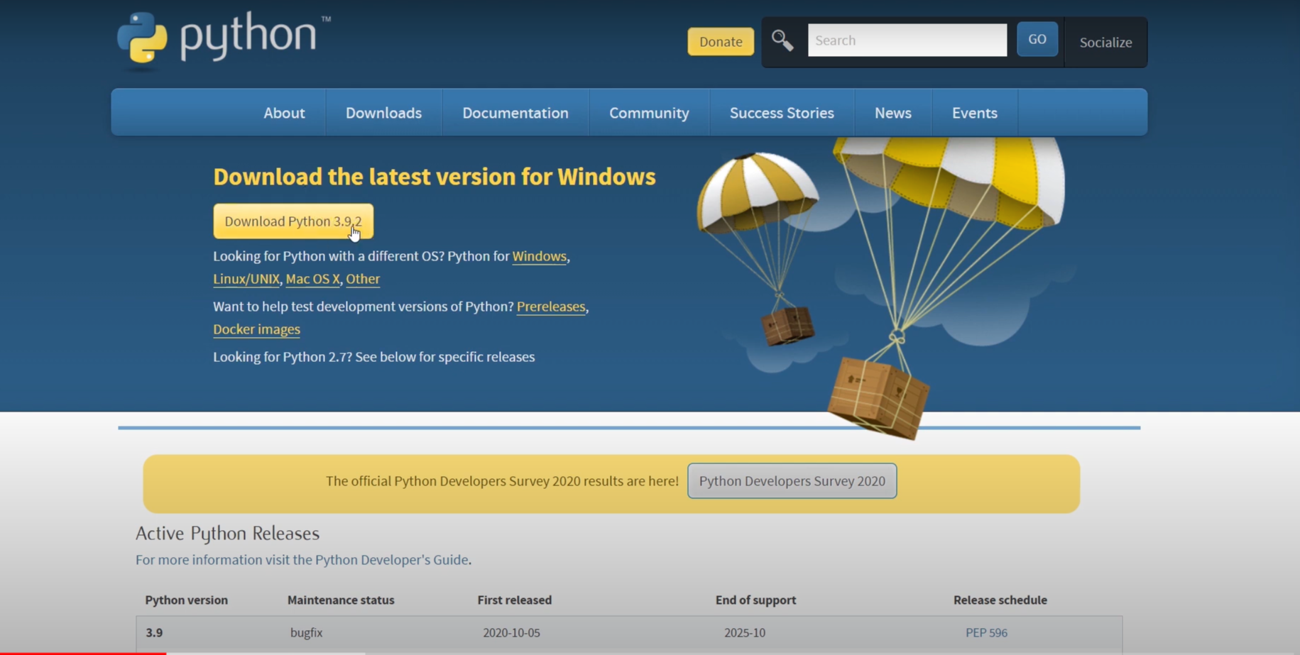 파이썬 다운로드 공식 홈페이지 :