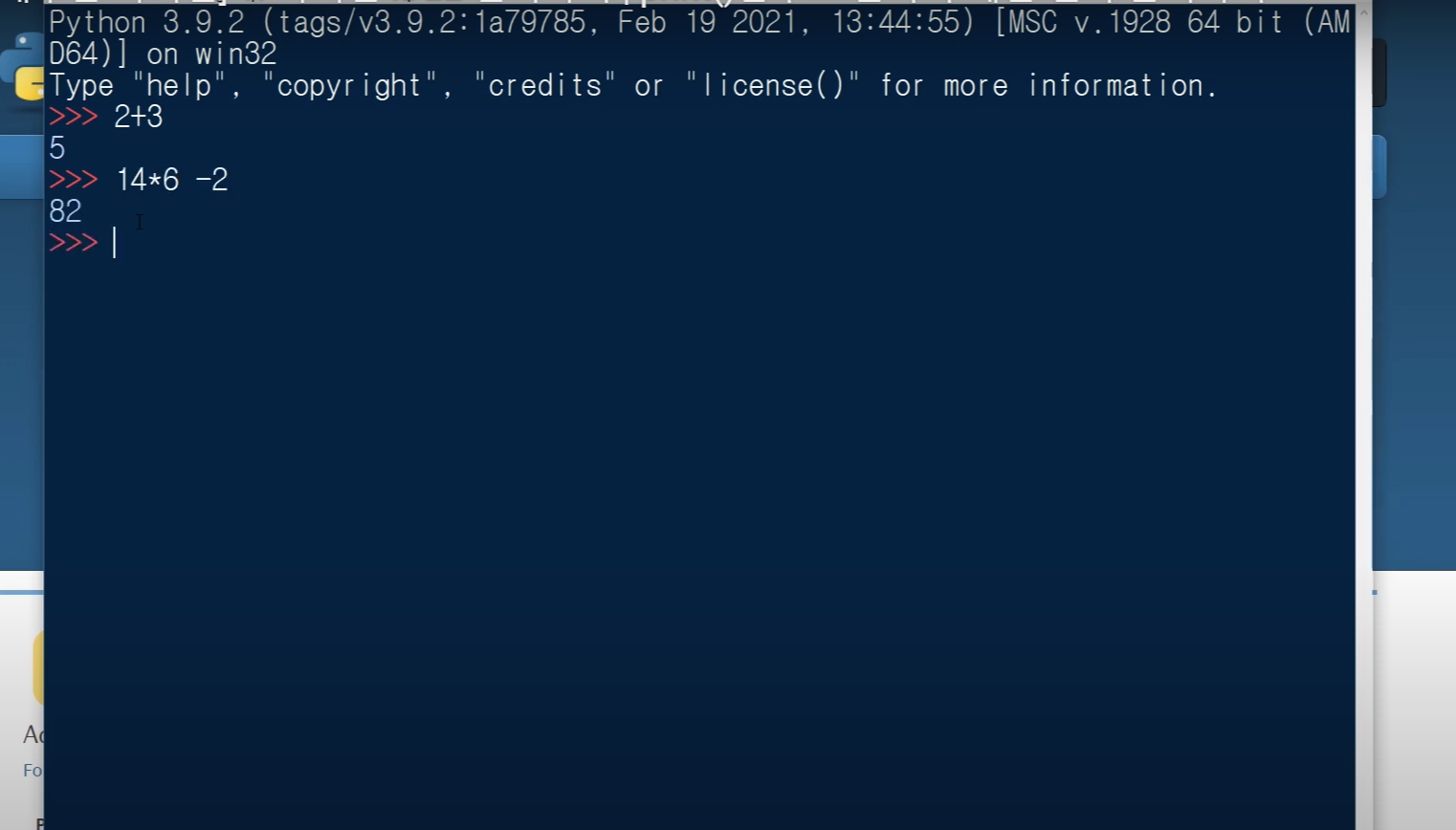 이 창에 ">>>"기호가 표시되는 것을 보실 수 있으실 거예요.