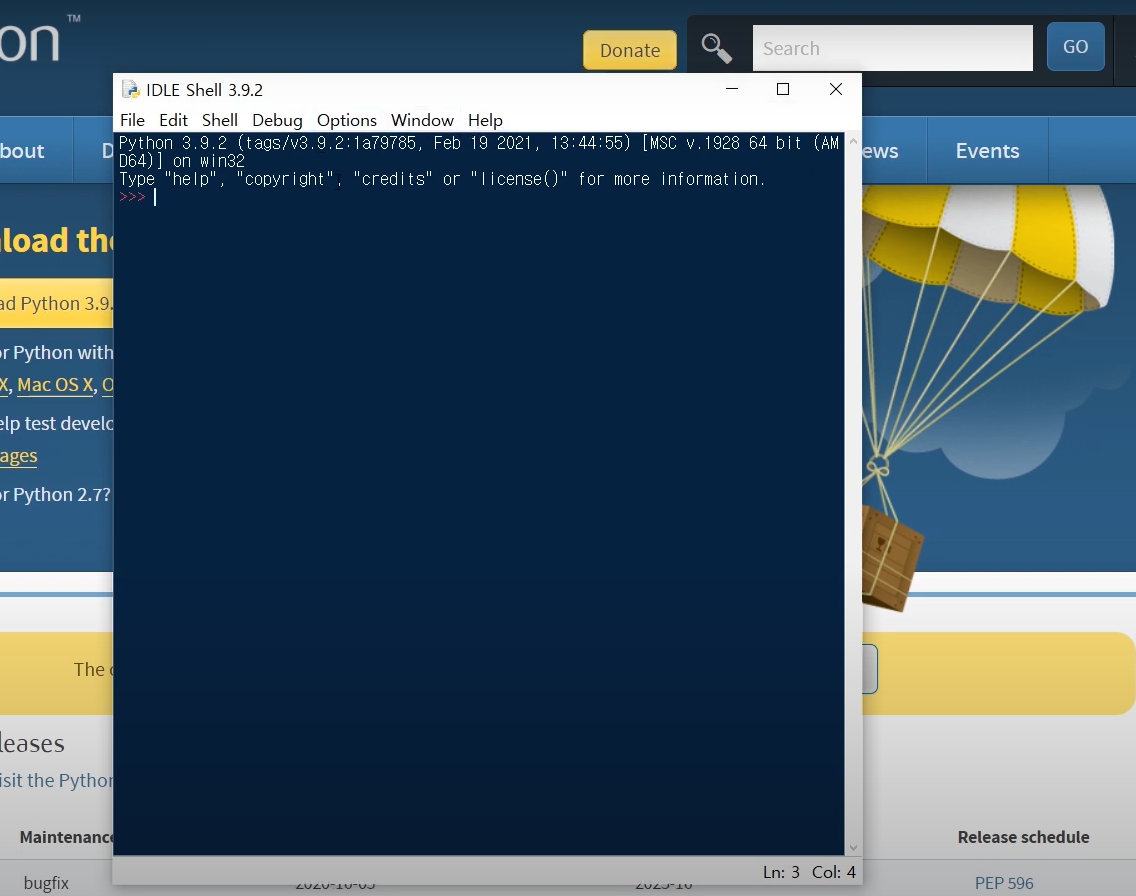 그러면, 이렇게, 파이썬 IDLE가 열리는 것을 보실 수 있어요.