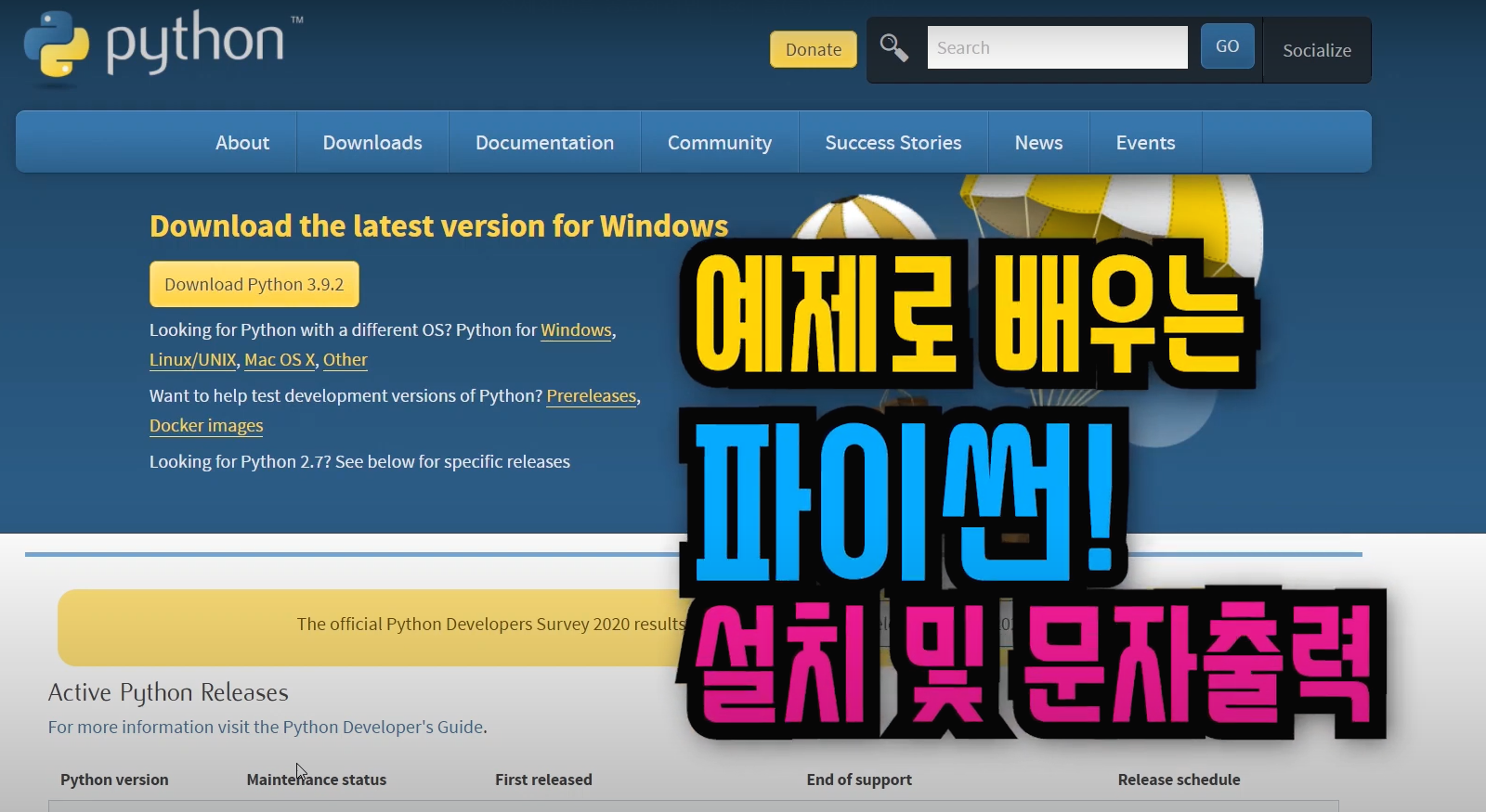 파이썬 다운로드 공식 홈페이지 :
