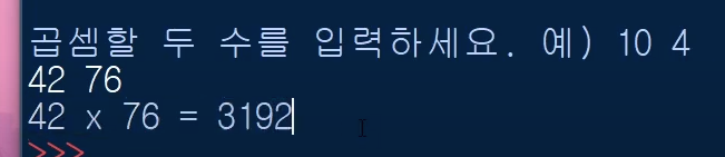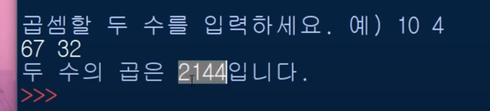 여러분은 아래와 같이 입력한 두 수의 곱을 표현해 보세요~