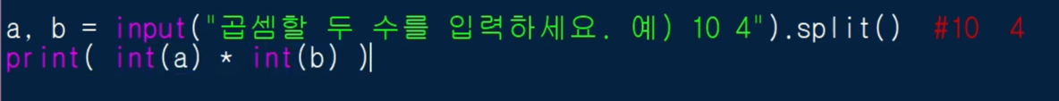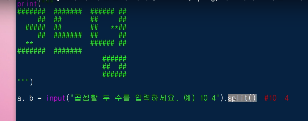 그리고 input().split()을 사용해서 입력되는 문자를 분리시켜 보겠습니다.