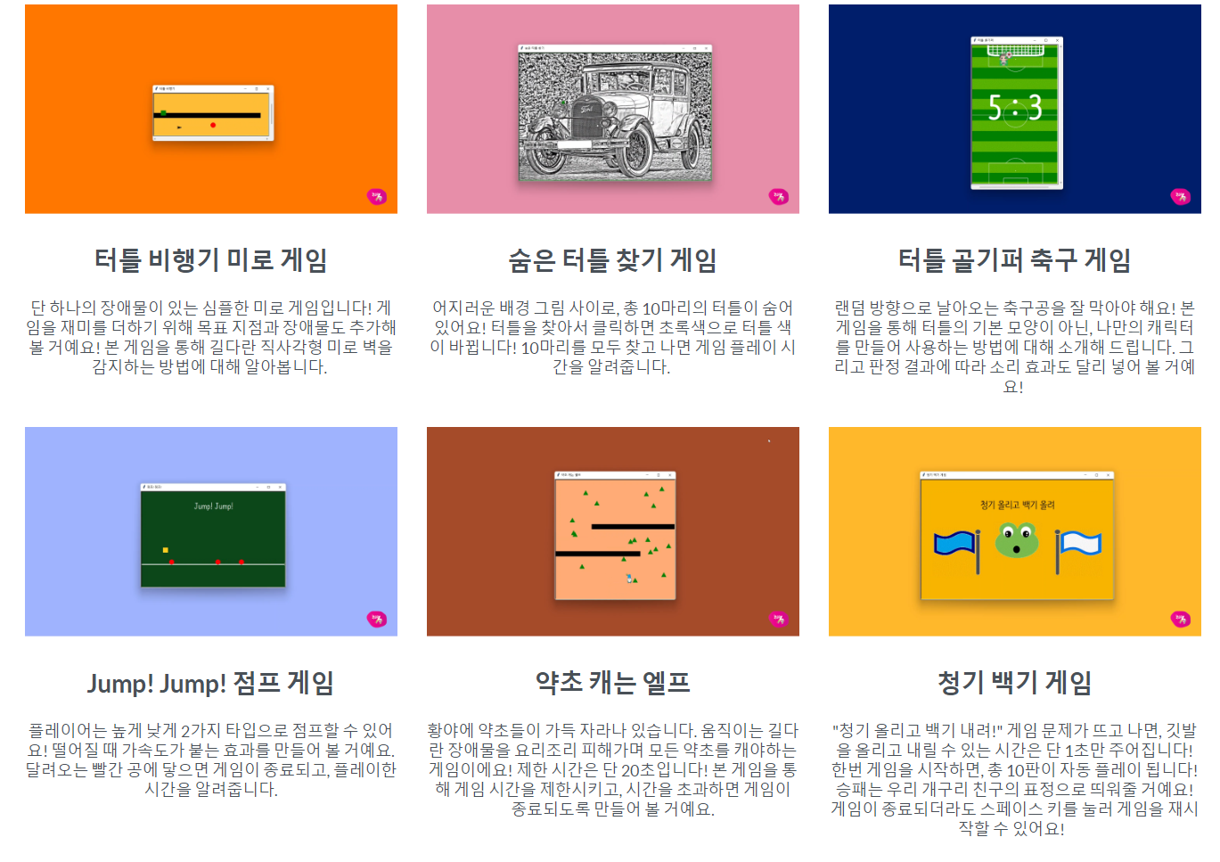 아래와 같은 파이썬 작품들을 만들 수 있어요!!