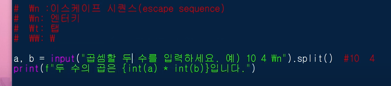 역슬래시 또는 원화기호\를 사용해서 엔터키나 탭 등의 기능을 만들어 낼 수 있습니다.