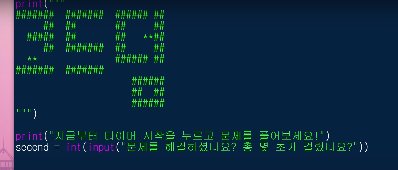 먼저, 초를 입력받기 위해, input()함수를 사용해서 아래와 같이 second라는 변수에 담아두겠습니다.