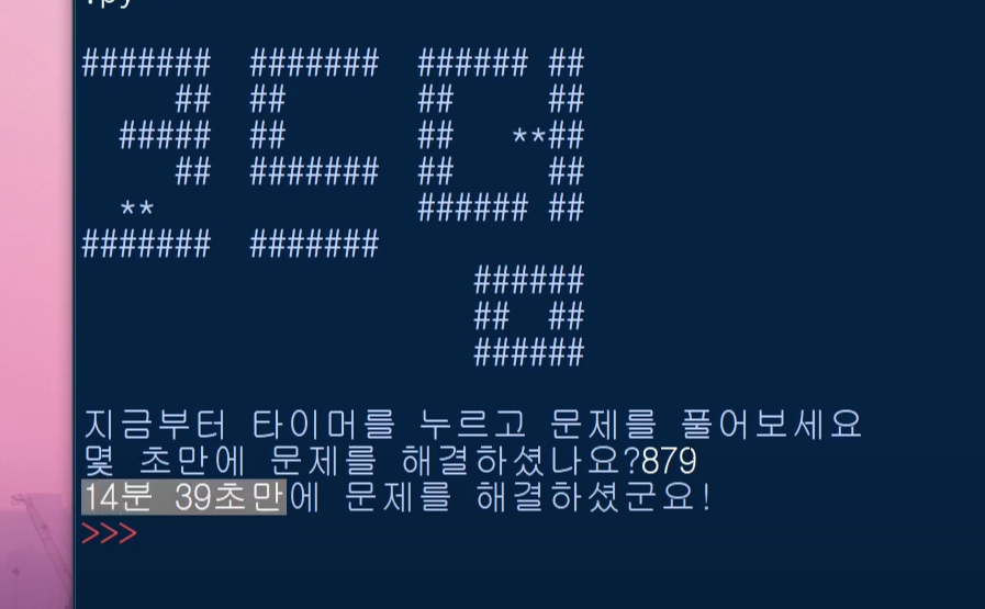 그러면, 14분 39초라는 결과를 출력시켜 주는 프로그램입니다.