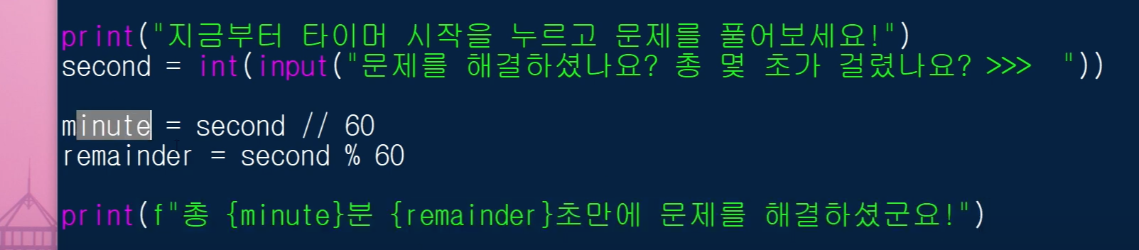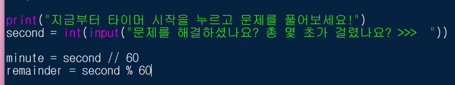 minute, remainder라는 변수에 각각 값을 담아줄게요.
