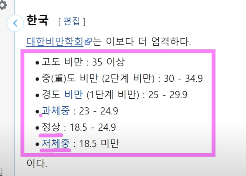 먼저 BMI를 계산하는 식부터 확인을 해 볼게요.