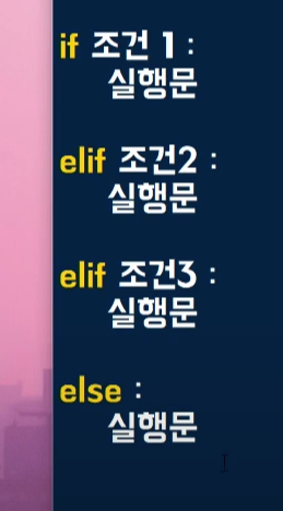 이렇게 조건이 여러 개로 나뉠 때는 elif를 사용해 주시면 됩니다.
