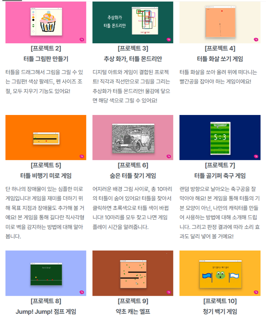 리스트, 딕셔너리, 함수와 같은 파이썬 기본 개념들로 아래와 같은 파이썬 작품들을 만들 수 있다는 사실을 알고 계시나요? 파이썬 입문과정에서도 이렇게 다양한 프로젝트를 직접 만들어 보며, 파이썬의 기초를 다져나갈 수 있습니다!