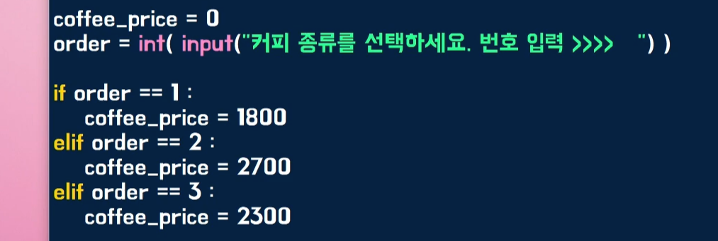 이제 조건문으로 주문한 커피 종류에 따라 가격을 달리 저장해 주기 위해서,