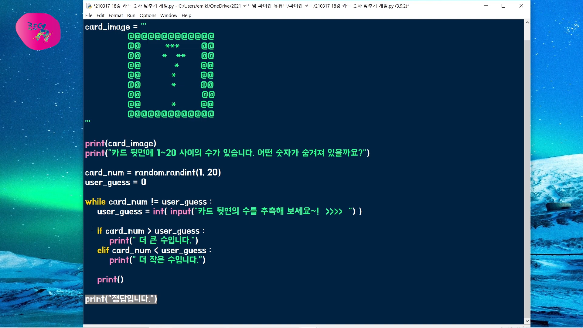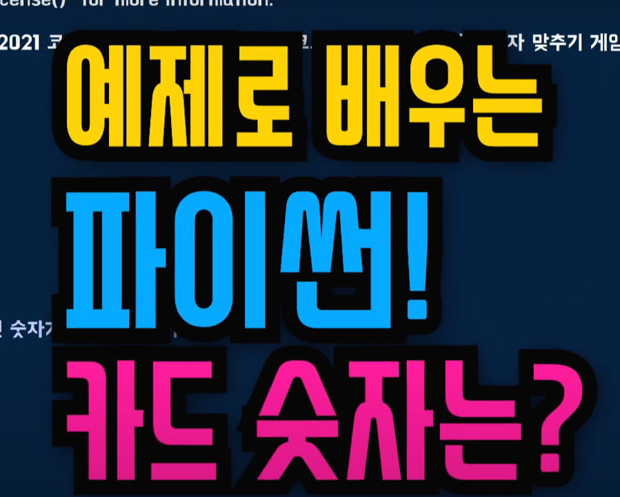 이번 시간에는 카드 뒷면의 숫자를 추측하는 게임을 파이썬으로 만들어 볼 거랍니다.