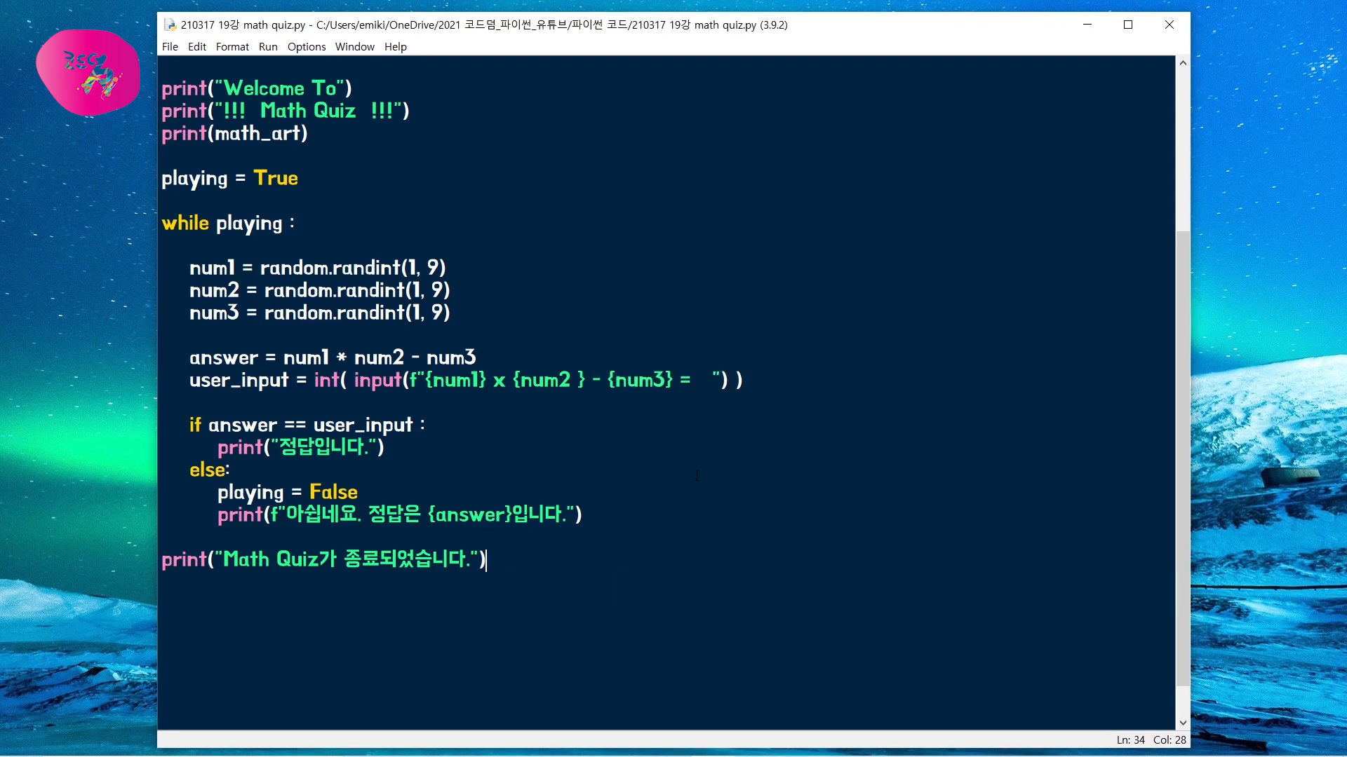 현재 점수를 계산하고, time 모듈을 사용해서 문제를 푼 시간을 계산하는 방법에 대해서는 아래 영상을 참고해 주세요~
