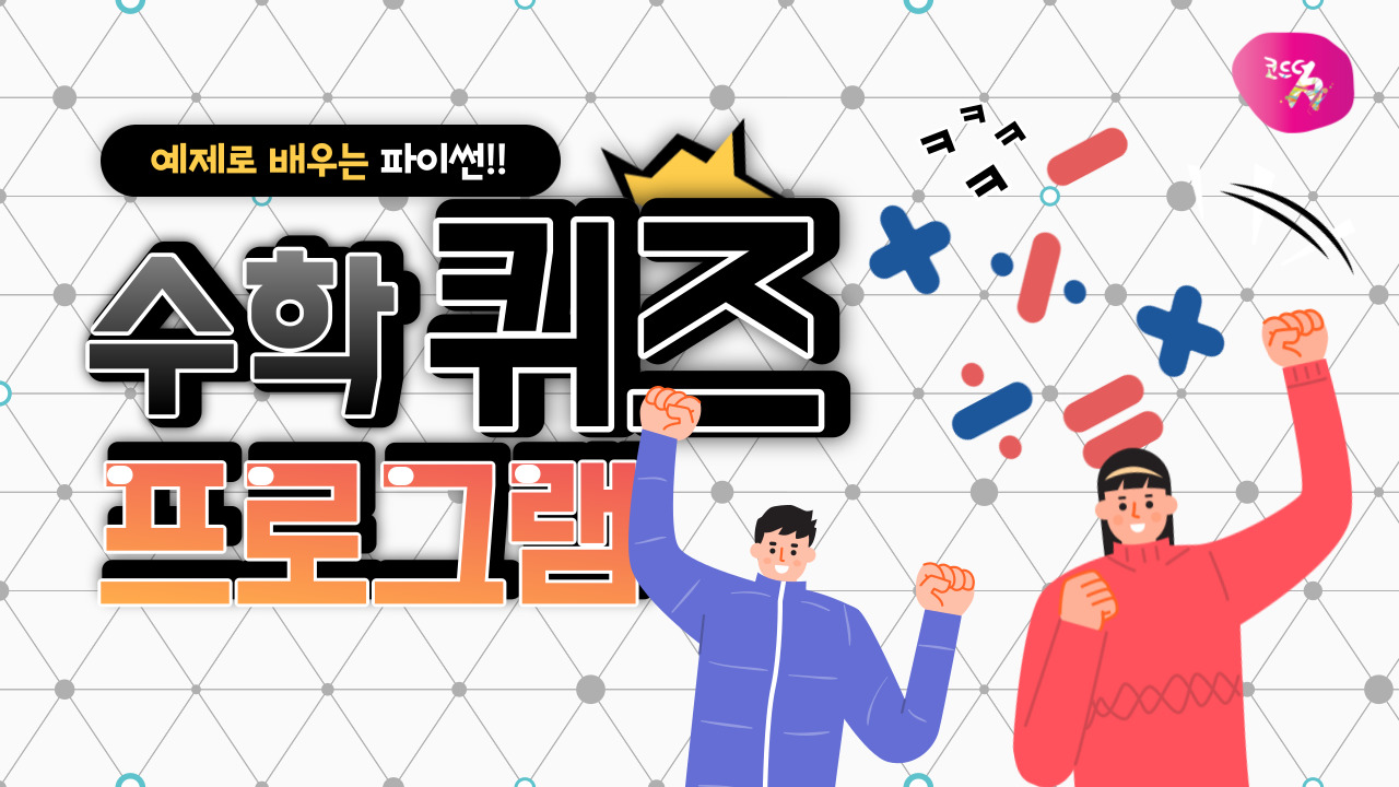 오늘은 함께 수학 퀴즈 문제를 푸는 프로그램을 만들어 볼 거예요.