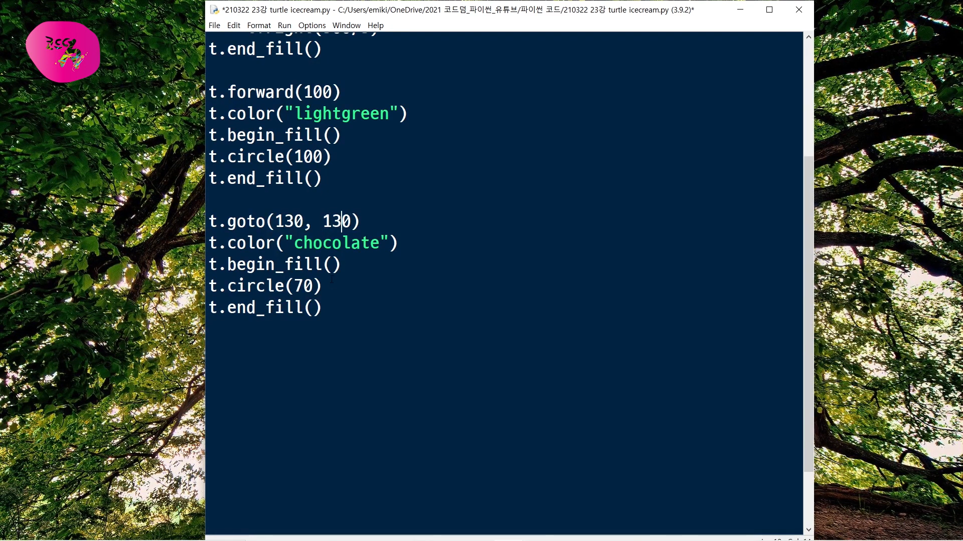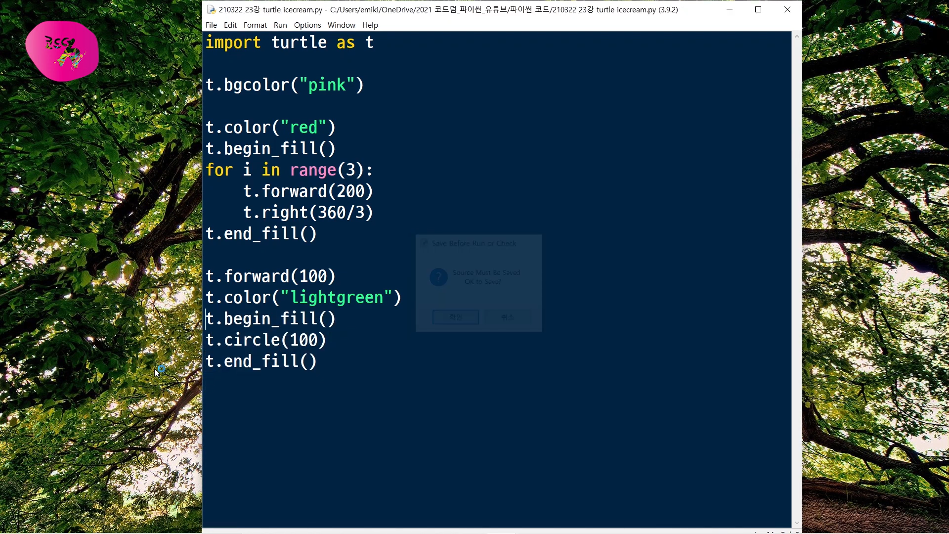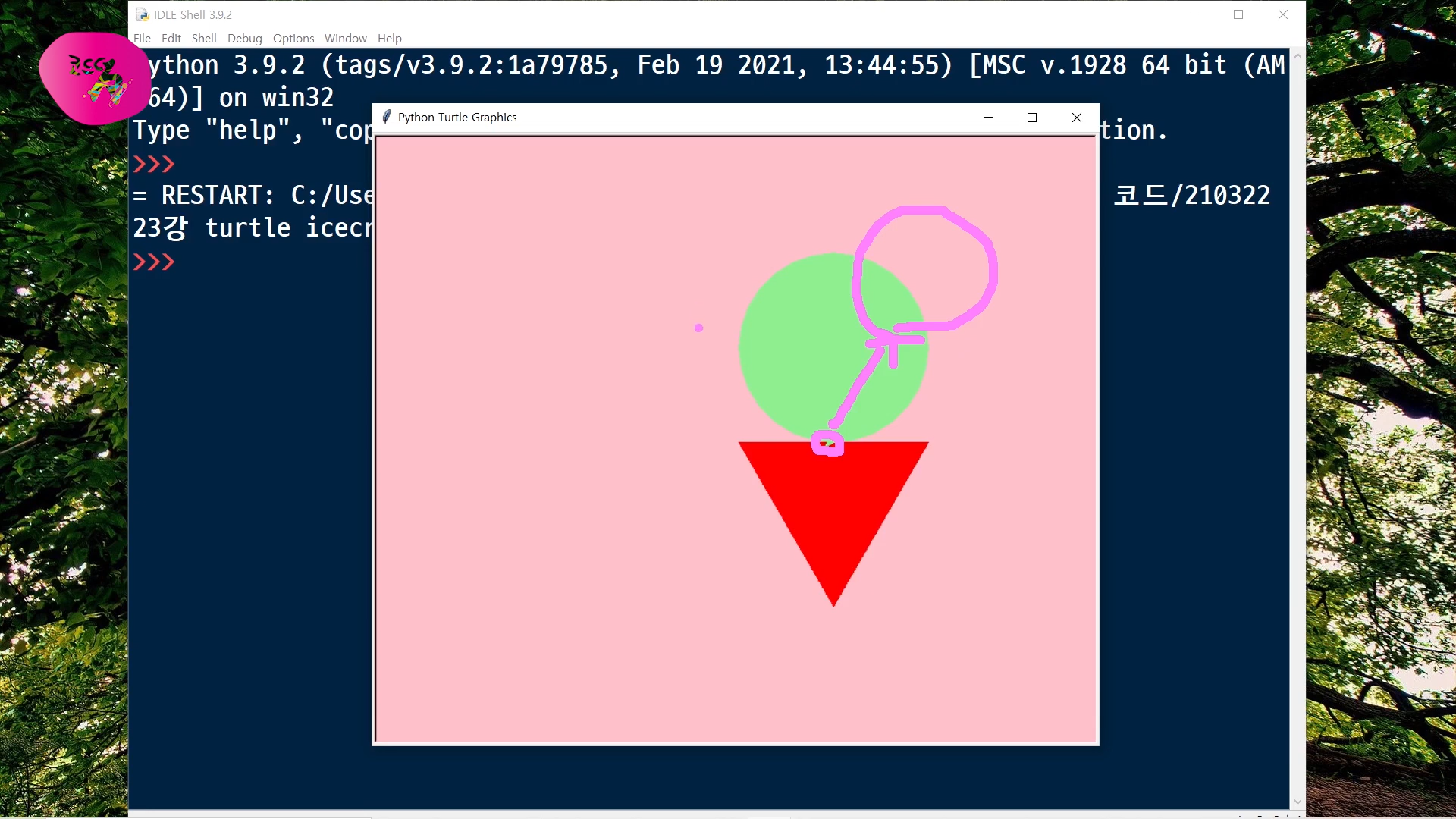 오늘은 파이썬에서 제공하는 터틀 그래픽 모듈을 사용해서 아이스크림을 하나 그려 볼 거예요.