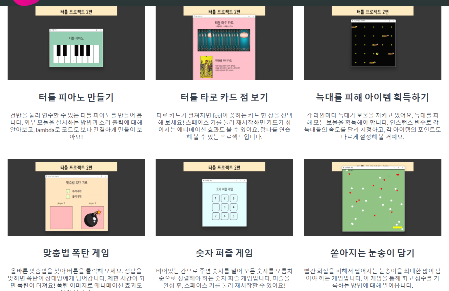 모두 입문 과정에서 만들 수 있는 작품들이랍니다!