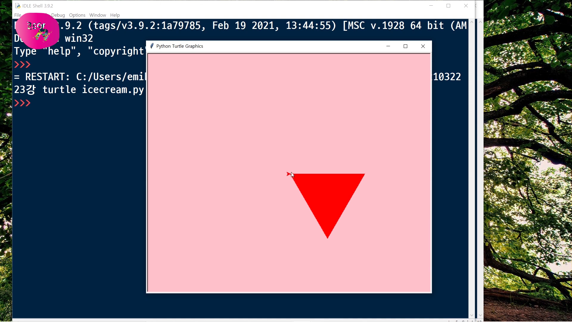 오늘은 파이썬에서 제공하는 터틀 그래픽 모듈을 사용해서 아이스크림을 하나 그려 볼 거예요.