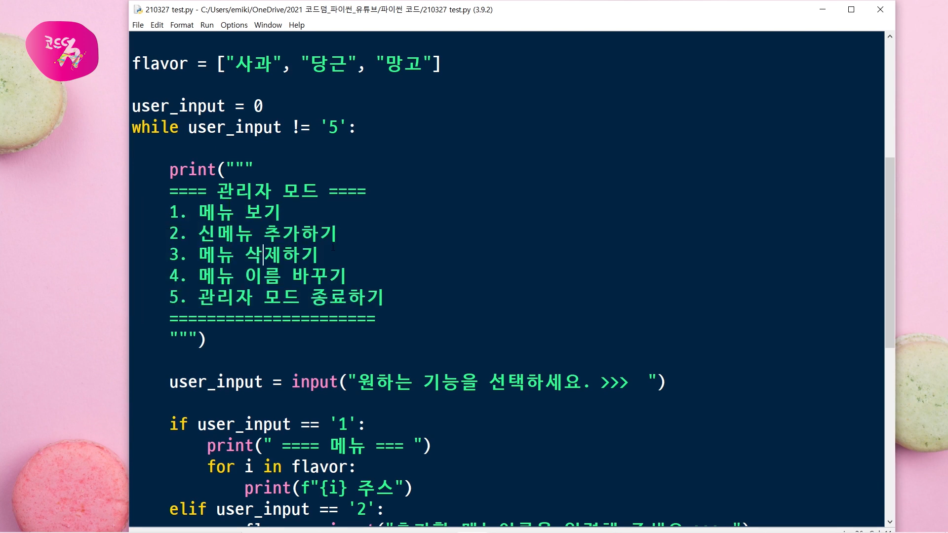 오늘 파이썬으로 만들어 볼 프로그램은 주스 카페 관리자 모드인데요.