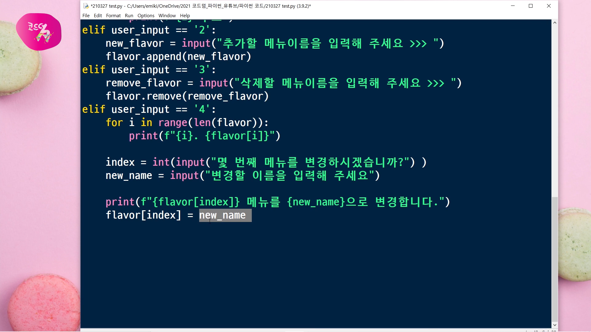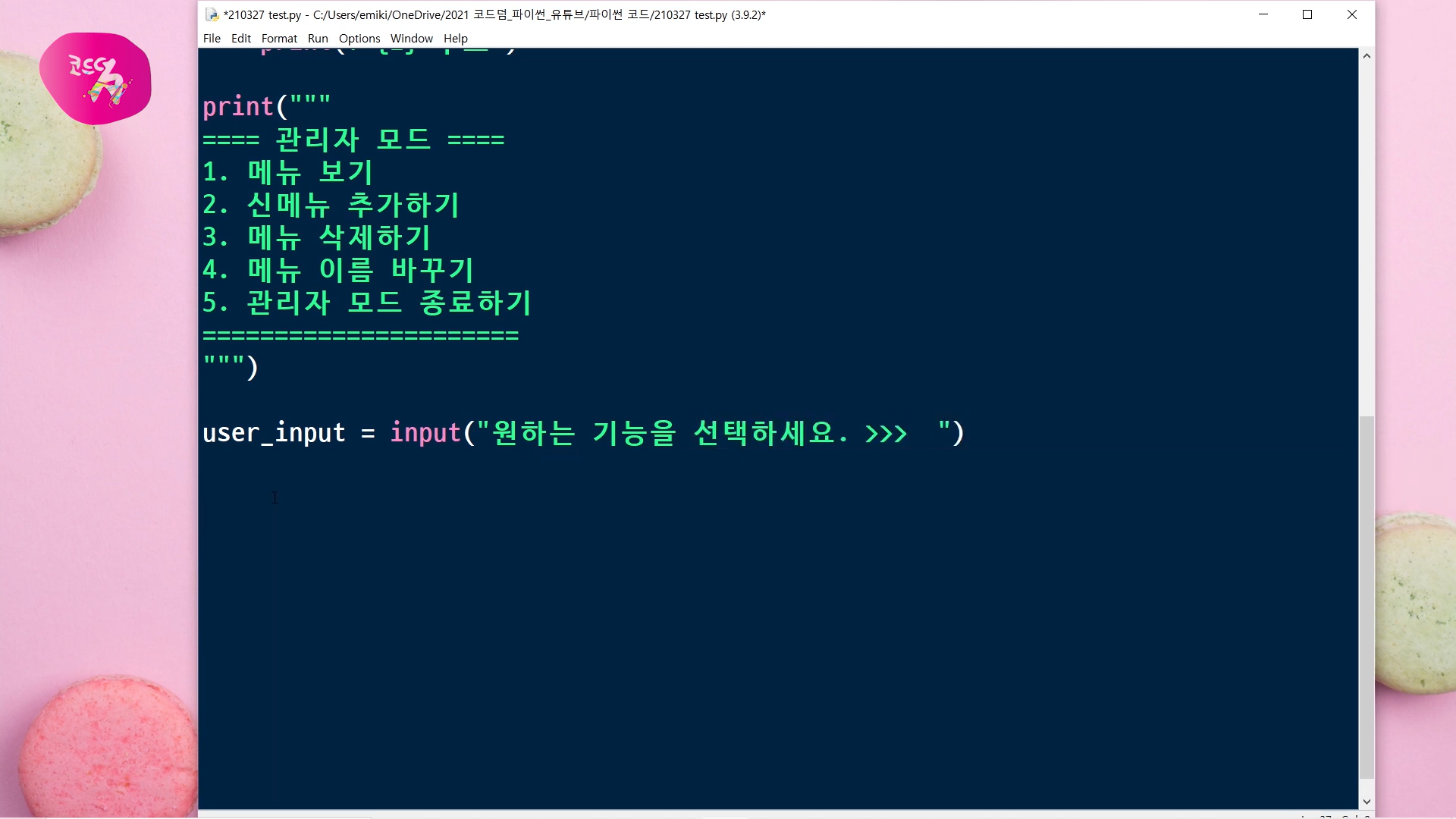 메뉴 변경을 위해서 2가지 input()을 받을 거예요.