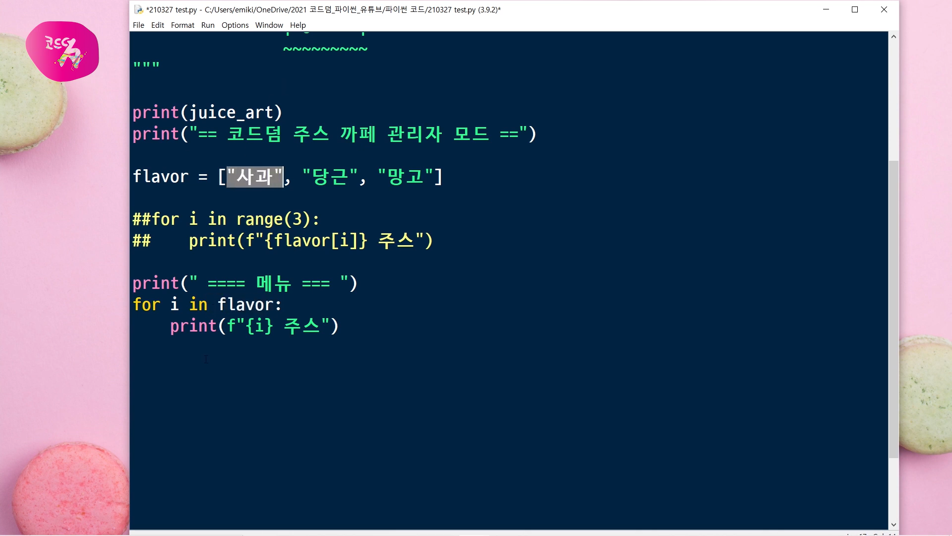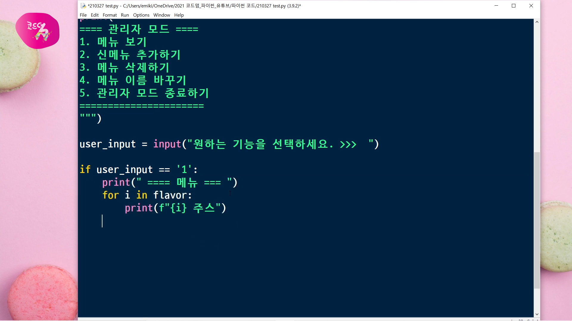 오늘 파이썬으로 만들어 볼 프로그램은 주스 카페 관리자 모드인데요.
