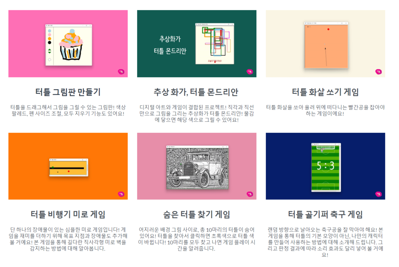 다양한 프로젝트를 직접 만들어 보면서 파이썬의 기초를 다질 수 있는 파이썬 터틀 프로젝트 강좌를 오픈하였습니다.