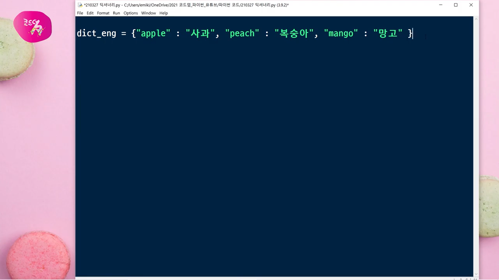 딕셔너리에 값을 불러오거나, 추가하거나, 삭제하는 방법은 아래 영상을 참고해 주세요.